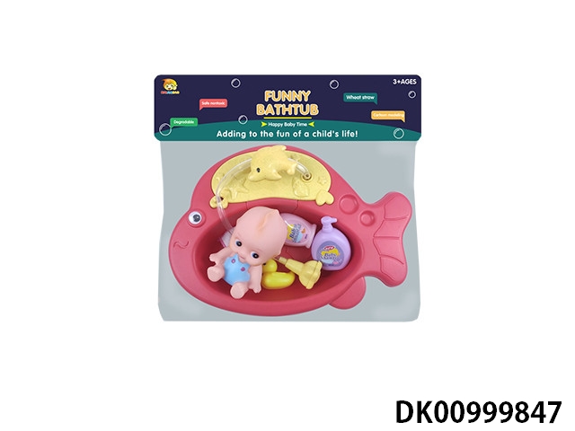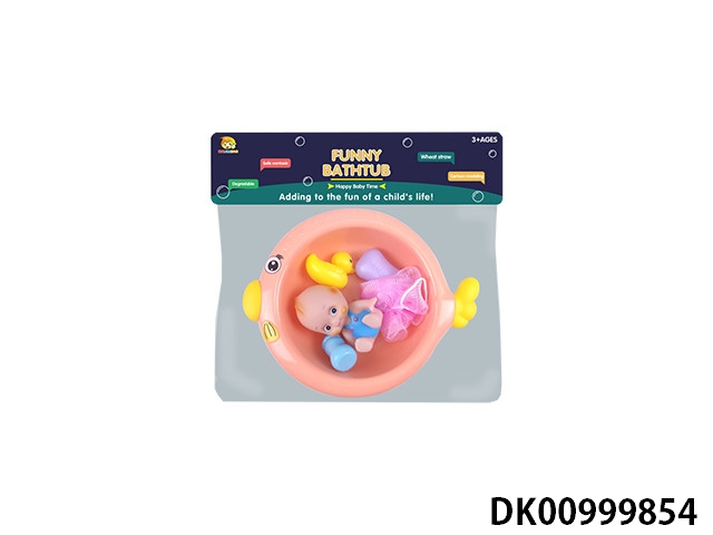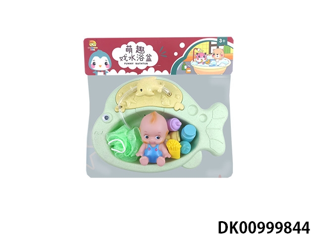 Round fish basin with bath accessories and vest baby