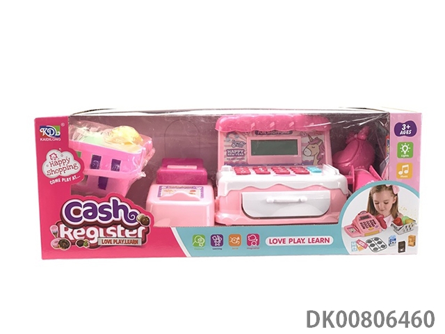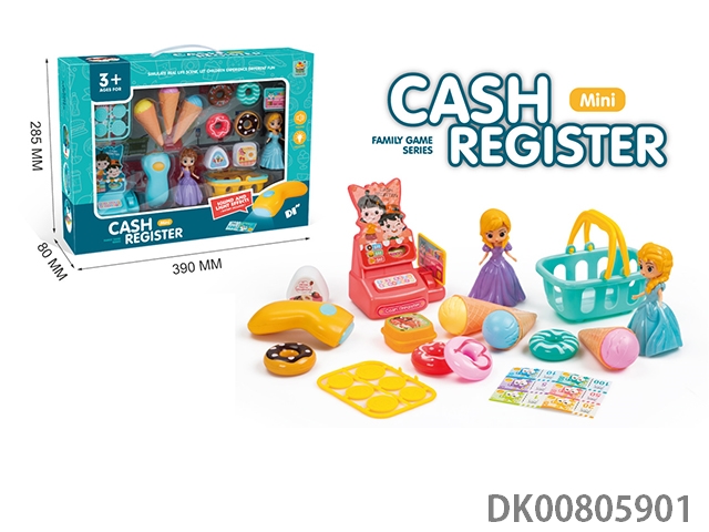 Mini cash register dessert shop with doll (scanner with light and sound)