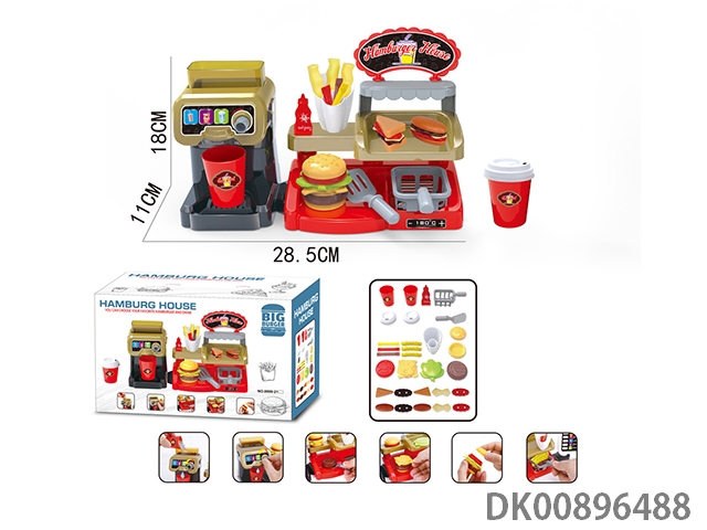 Pink ordering machine with hamburger coffee machine set