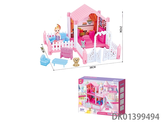 Diy hellokittle villa play set/no light music/comes with doll/no package electricity