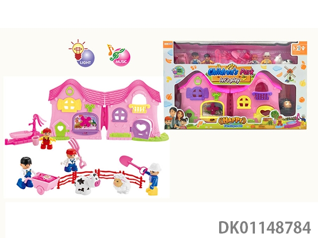 Building block teacher and student 6-person farm villa set