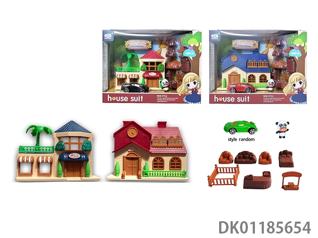 Colorful lighting diy villa with doll dessert set