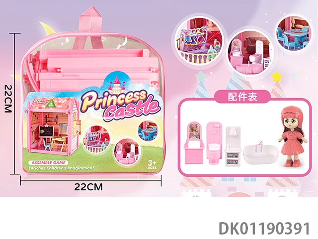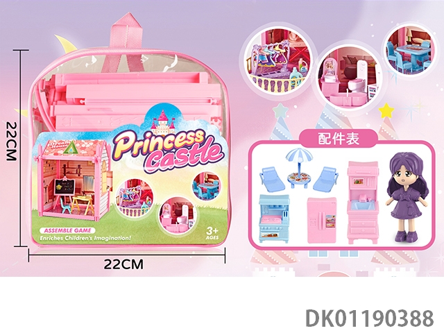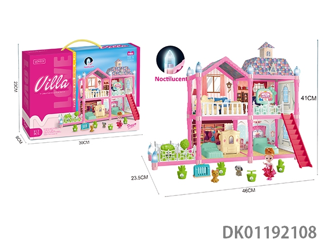 Colorful lighting diy single story villa with doll kitchen set