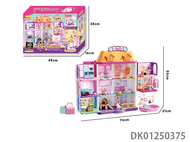 Cute pet life pavilion set and door ring (98pcs) with 3 ag13 batteries included