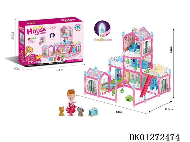 Night glow purple diy assembled doll castle villa 192pcs