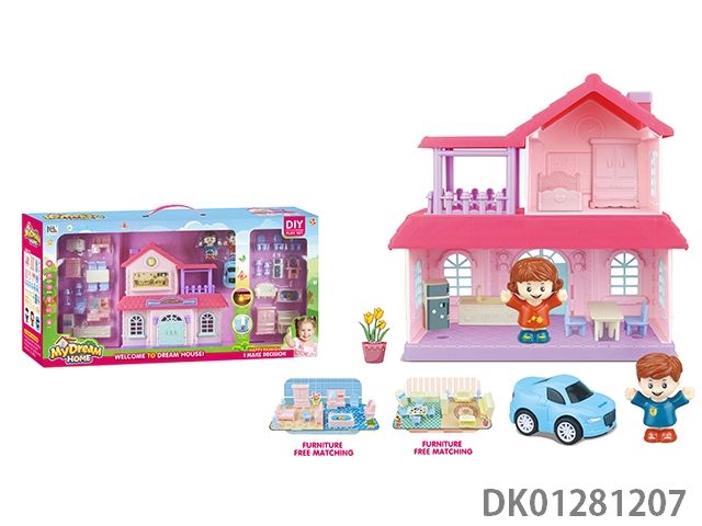Diy villa set with barbecue/shopping cart/dual lights