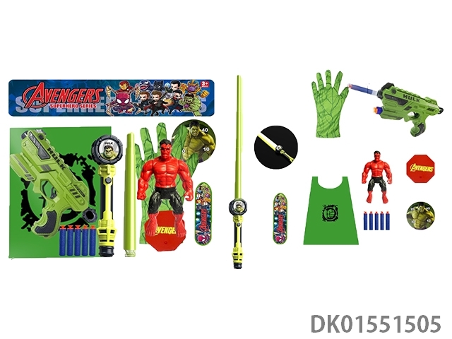 Red giant voice lightsaber and gun * 5 bullets and gloves and characters, cloak and skateboard base and target