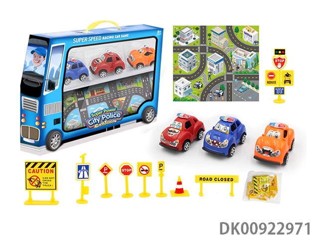 City carpet with 3 police car sets (plus 9 road signs)