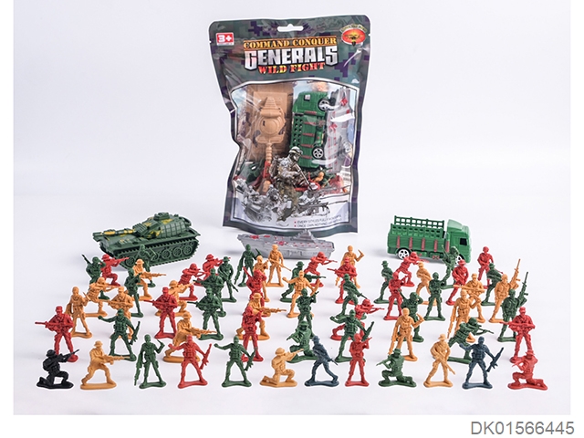 Military kit (baton and hang tag, telescope and walkie talkie, time bomb and camera * 2, bullet chain, landmines and hand grenades, compass and bullet clip, and may fourth soft bullet gun)
