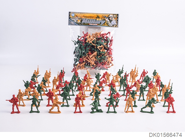 Military kit (bullet chains, handcuffs, batons, parking signs, gold bullets, walkie talkies, compasses, timed bombs, grenades, connected gun targets, kettles, binoculars, gun targets, bullet clips, and may fourth soft shell guns)