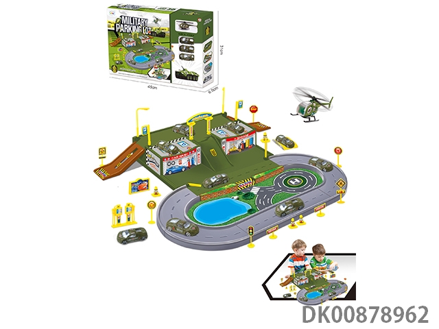 The military parking lot is equipped with 1 aircraft and 3 cars