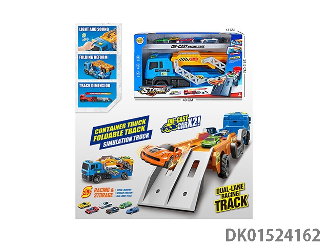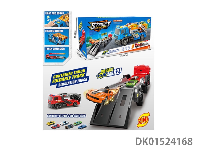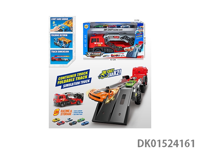 Light and music catapult folding container truck with 2 alloy cars (including 3 ag13s)
