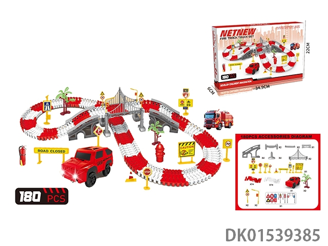 Fire truck track theme set (35pcs) 2aa without electricity included