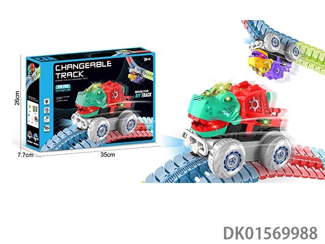 Gravity dinosaur diy colorful adhesive disc rail car (electric colorful lights) 215pcs