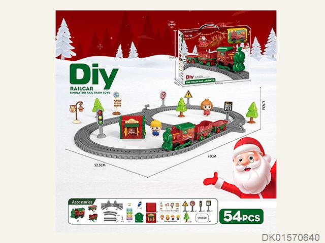 Christmas themed diy assembled electric rail car/54pcs