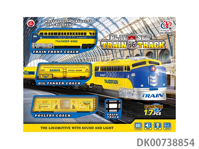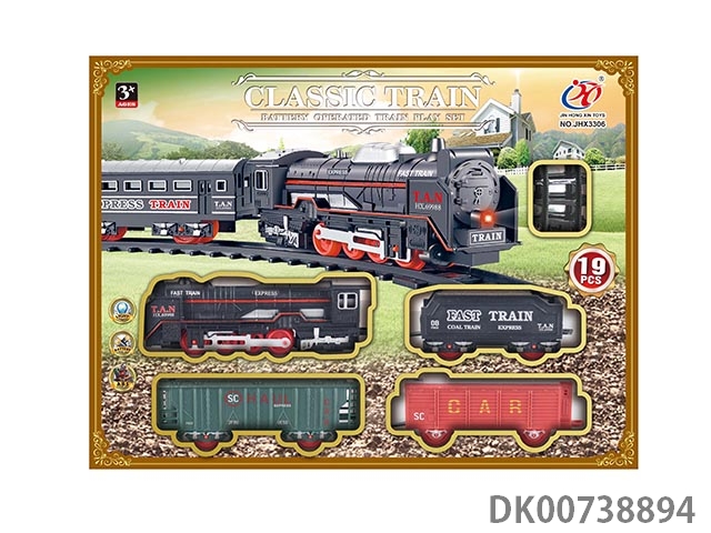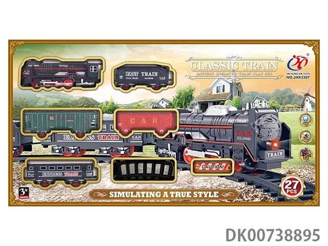 Eighty-piece zhuang electric smoke train track set with lights