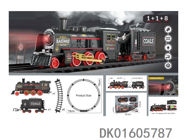 Retro track train (1 locomotive, 1 carriage, and 8 tracks)