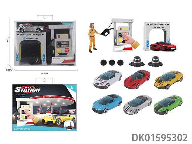 Gas station car wash scene combination with catapult 1:64 alloy short window racing car