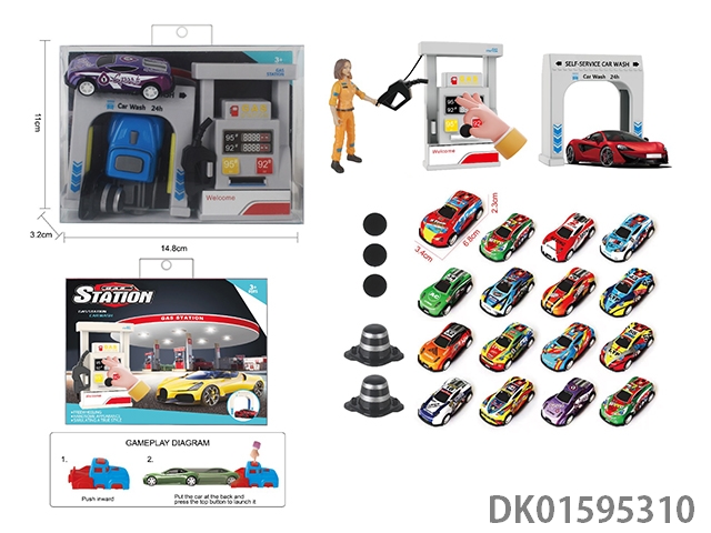 Gas station car wash scene combination with catapult 1:64 alloy racing car