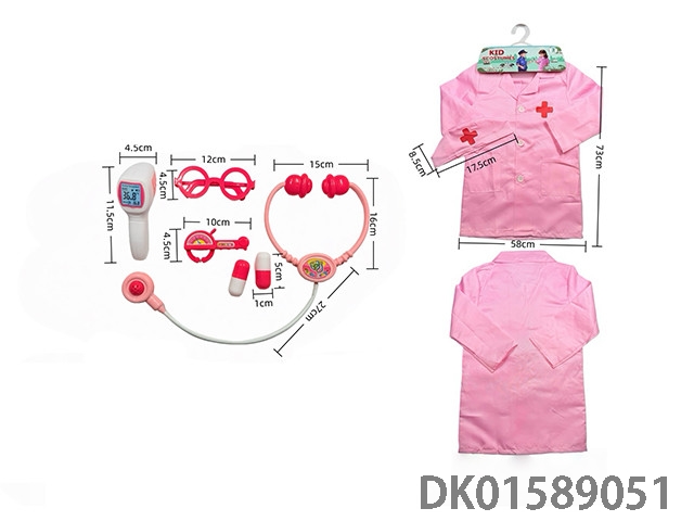 Cross border children’s diy clothing role-playing round label doctor’s uniform and 7-piece set (thick version) powder