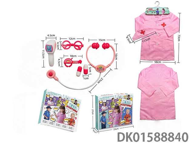 Cross border children’s diy clothing role-playing round label doctor’s uniform and 7-piece set (thickened version) (color box version) powder