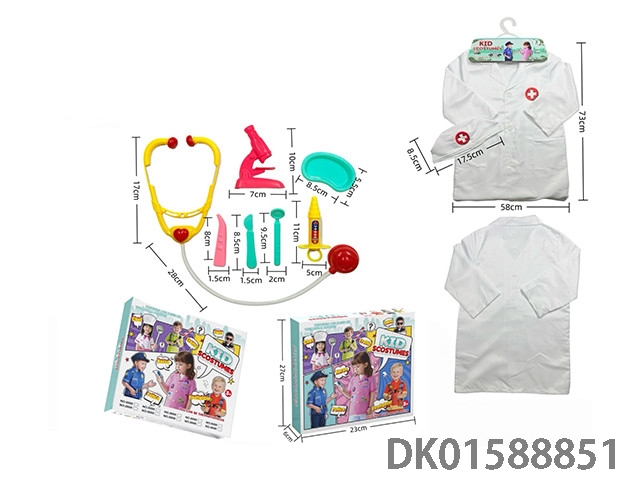 Cross border children’s diy clothing role-playing round label doctor’s uniform and 7-piece set (thickened version) (color box version) white