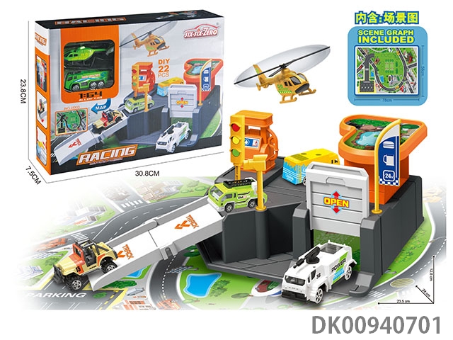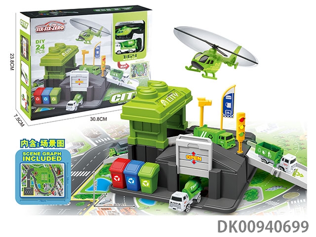 Alloy city parking suit (equipped with one alloy aircraft and one alloy car) 24pcs