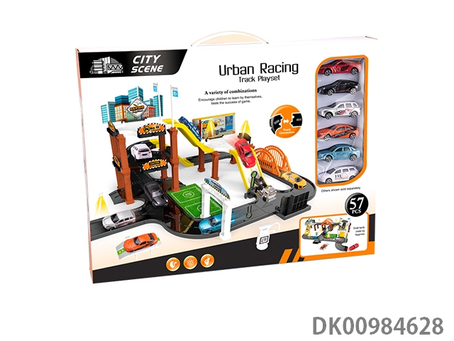 Scene of track chasing in changeable cities (with 6 cars)