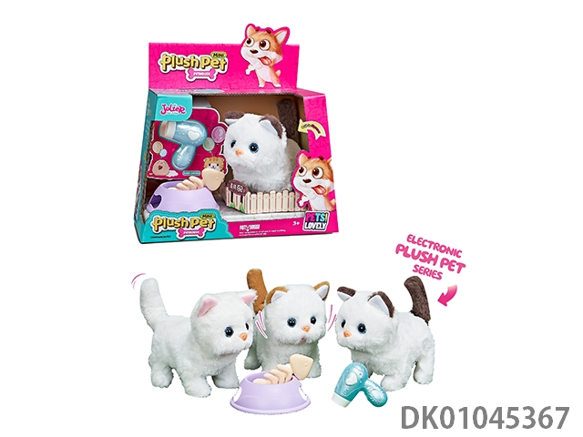 Electric plush and medium cat and bowl and fish bone and hair dryer