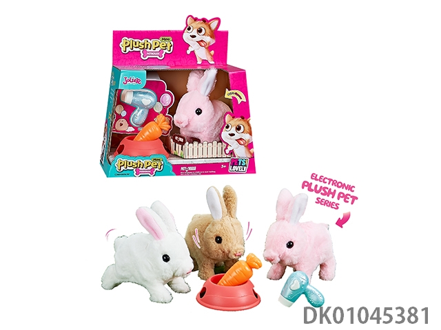 Electric plush and medium rabbit and bowl, radish and hair dryer