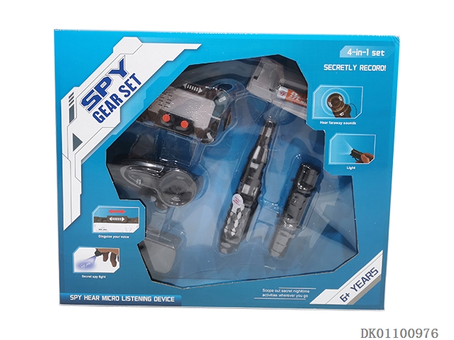 Eavesdropper and flashlight and pen and voice camouflage sound