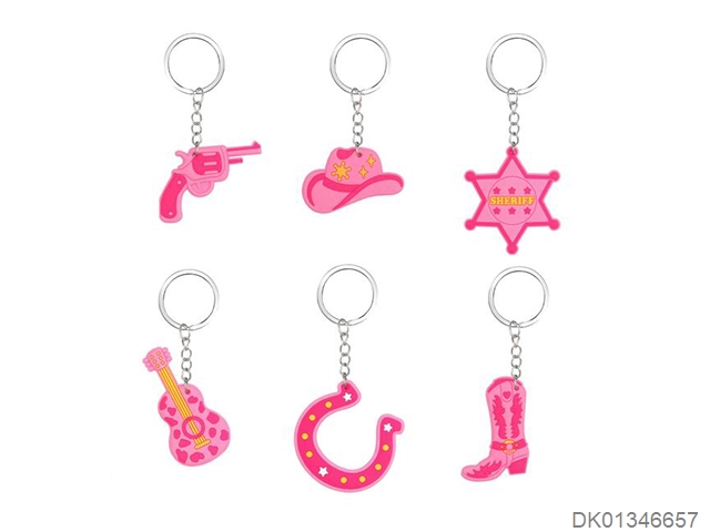 Pvc - pink western cowboy keychain (iron ring)