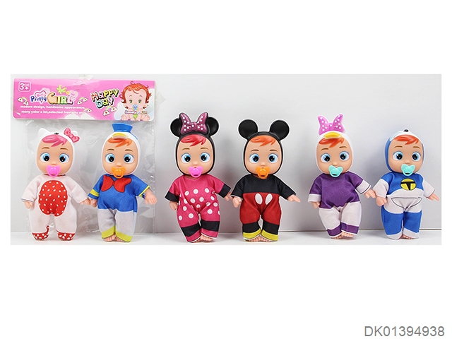 5.5-Inch 16cm 5-joint empty body bent foot color printed cartoon doll with eyes and pacifier in two sets, multiple mixed
