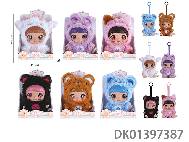 7-Inch 5-joint 5d eye blind box nuomi nommi plush trendy doll keychain pendant figurine sitting posture pp material with four tone ic and card 6 blind box dolls random, 6pcs/box