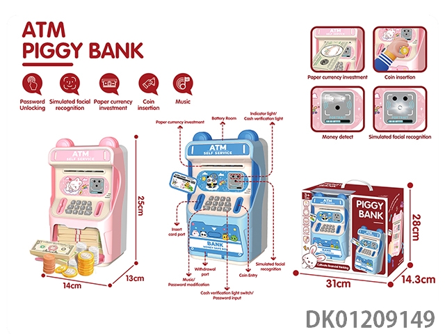 Atm intelligent piggy bank (password simulation facial recognition, cash verification, music, automatic door opening, automatic roll up)