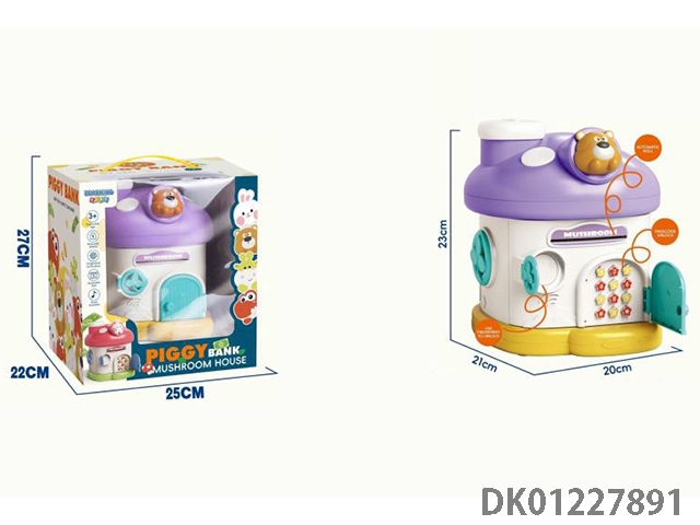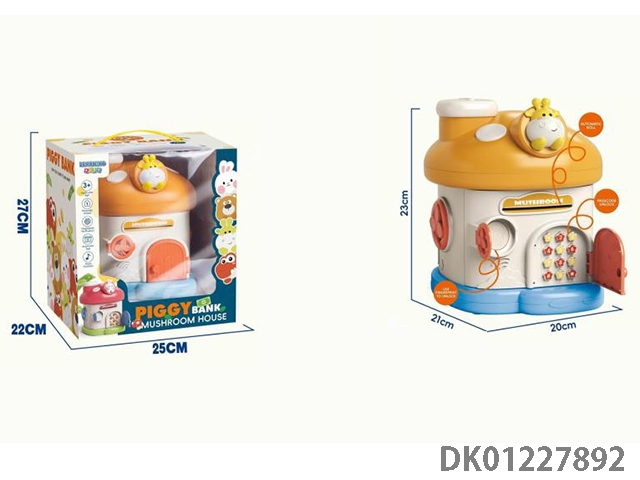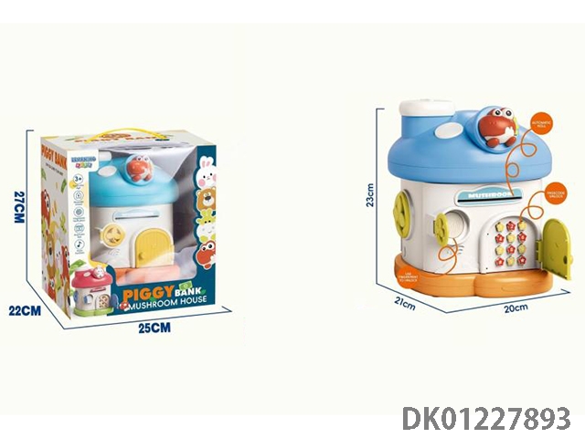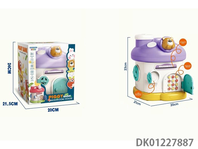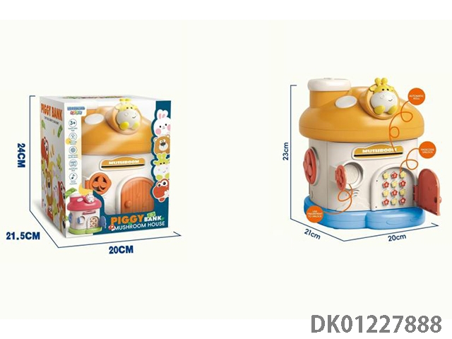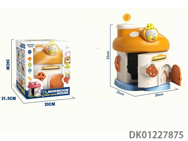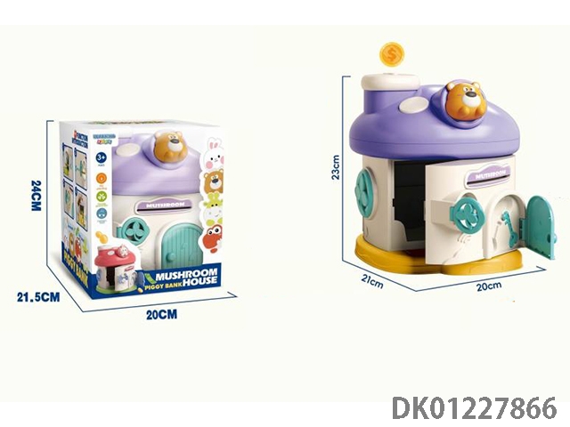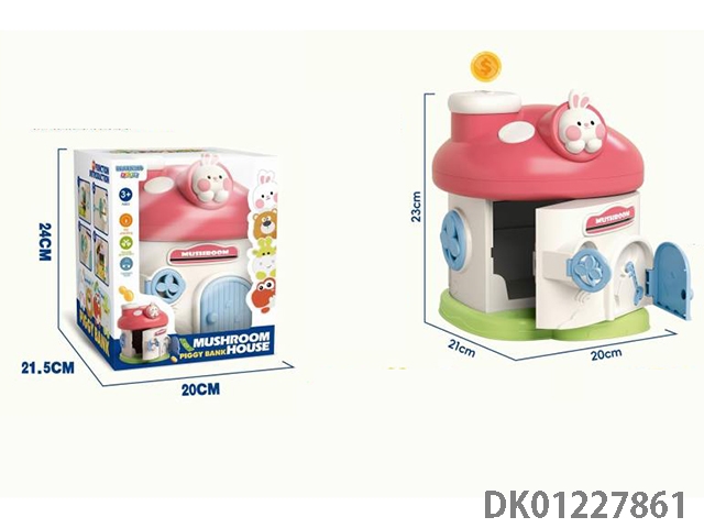 Little bear mushroom house piggy bank mechanical lock with 2 keys