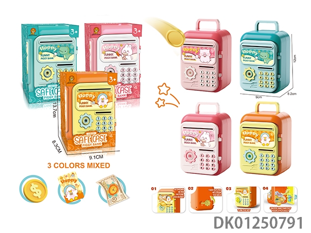 Automatic roll up/lighting/voice prompts for electric piggy banks
