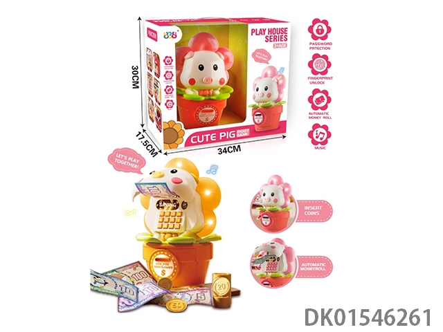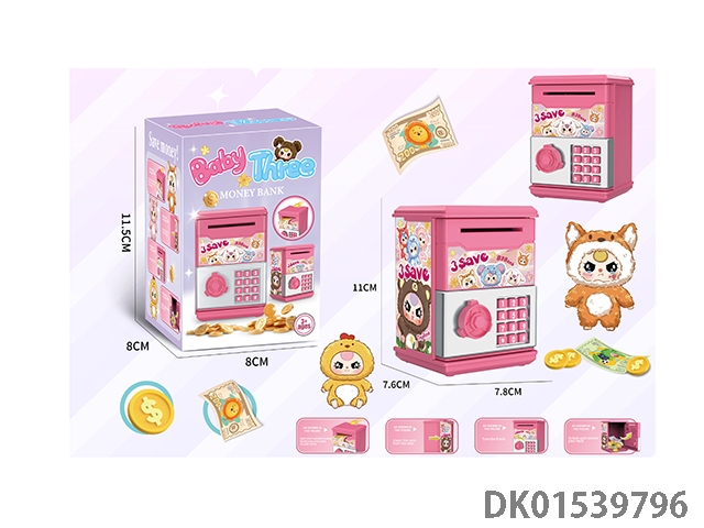 Cartoon multifunctional cash storage cabinet (password fingerprint, cash verification, music, automatic cash roll)