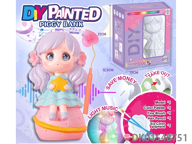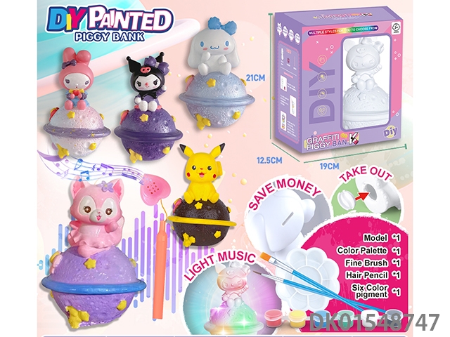 Diy painted piggy bank, music handheld lantern - planet doll
