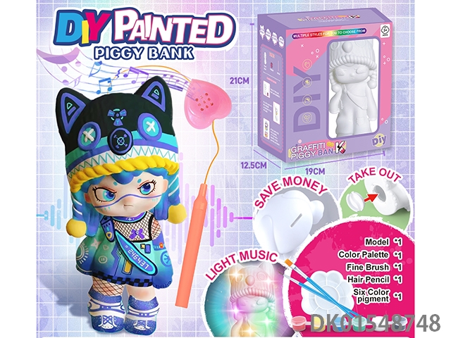 Diy painted piggy bank, music handheld lantern - cool girl