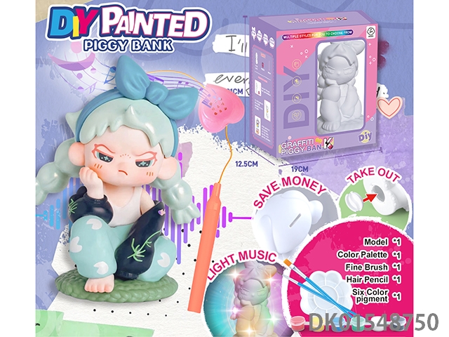 Diy painted piggy bank, music handheld lantern - dragging sister
