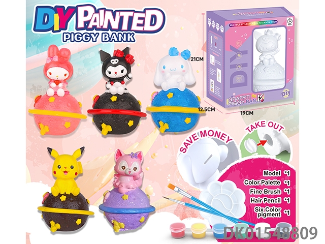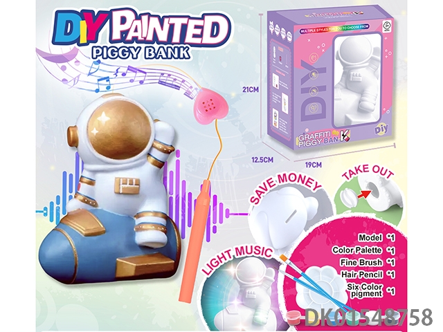 Diy painted piggy bank, music handheld lantern - space