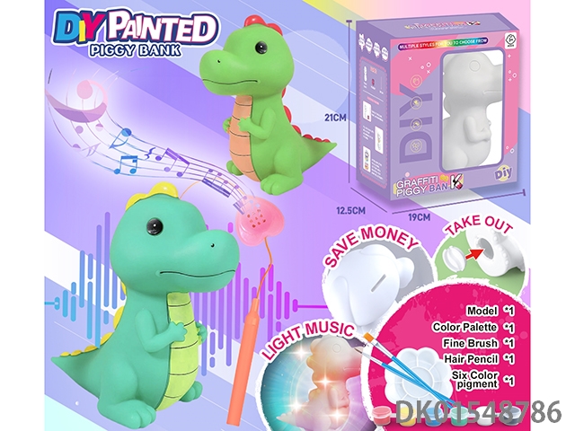 Diy painted piggy bank, music handheld lantern - dinosaur