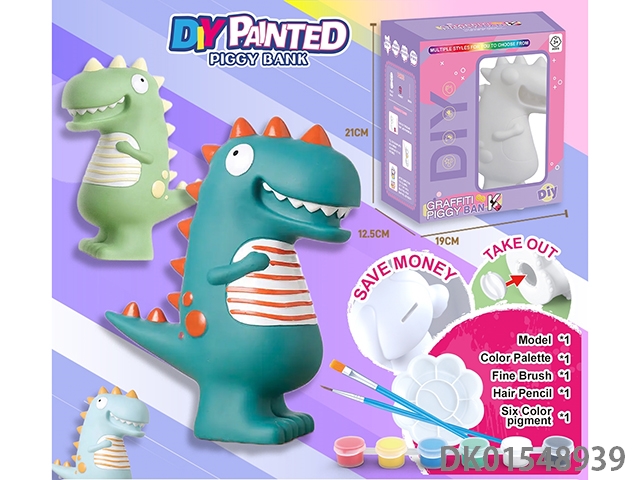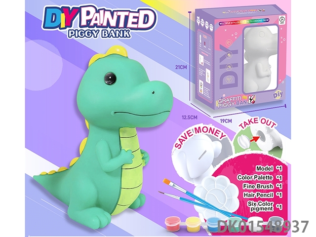 Diy painted piggy bank - dinosaur 1