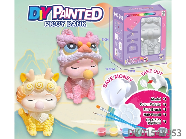 Diy painted piggy bank - bubble dragon lion