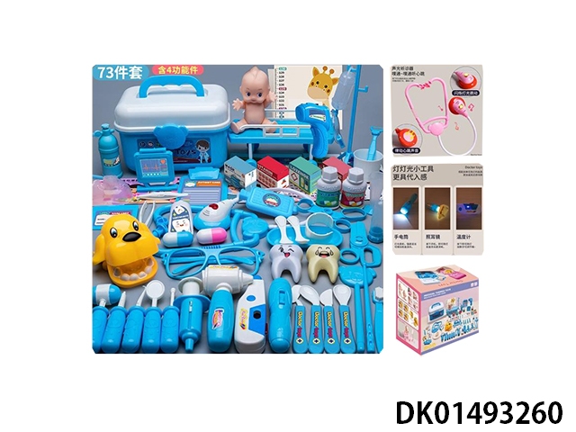 Medical box set of 73 pieces (4 functions with sound and light, and doll bed)
