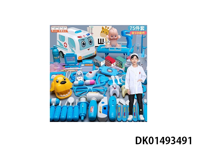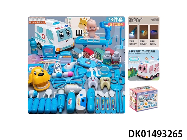 73 Piece set of sound and light ambulance with 200 early education (5 functions and baby bed)