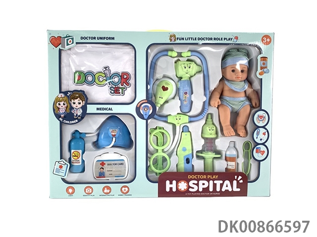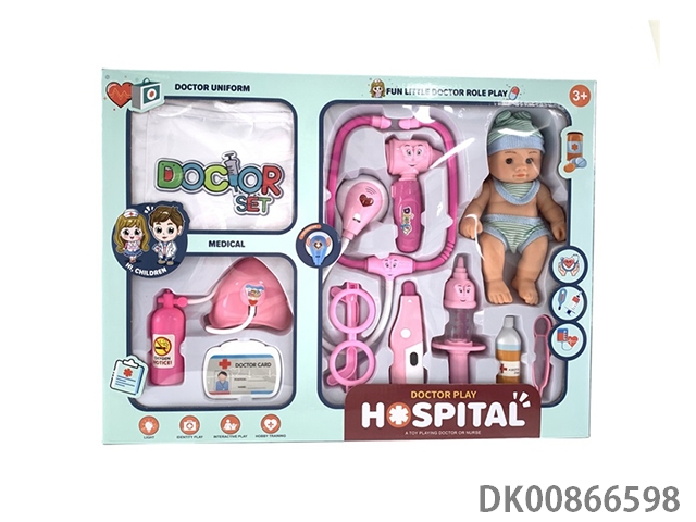 Family educational acousto-optic medical tools with dolls. nurse clothes