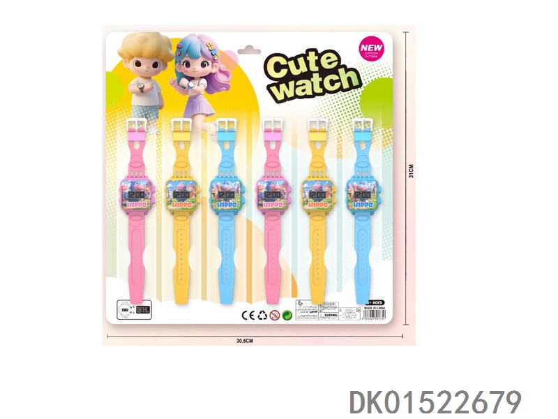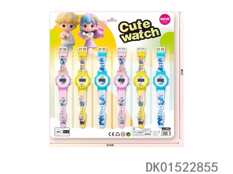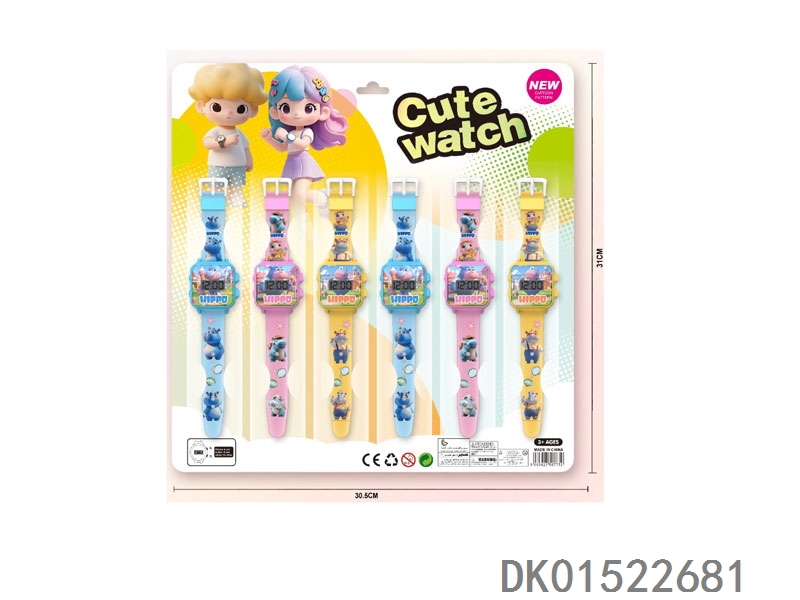 3 Hippopotamus electronic circular watches with 12 unprinted straps per plate