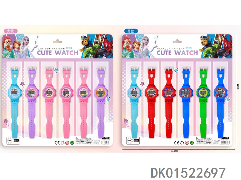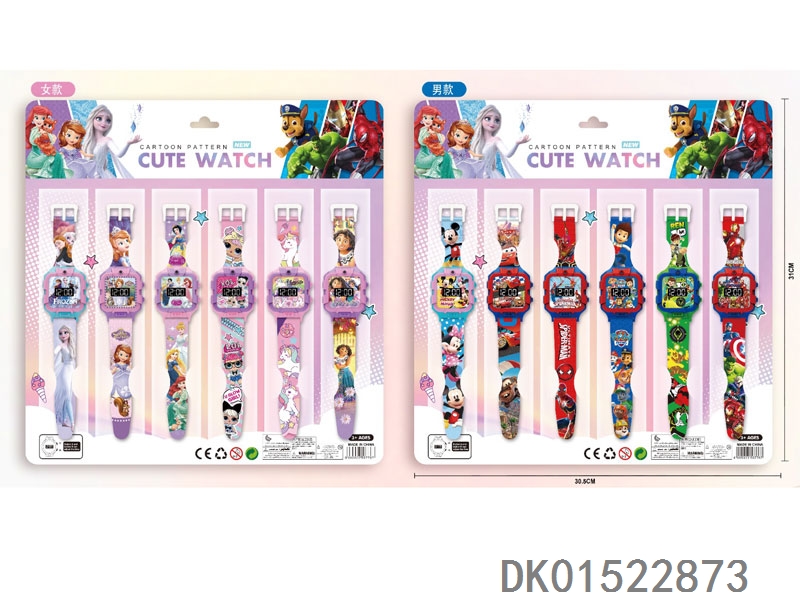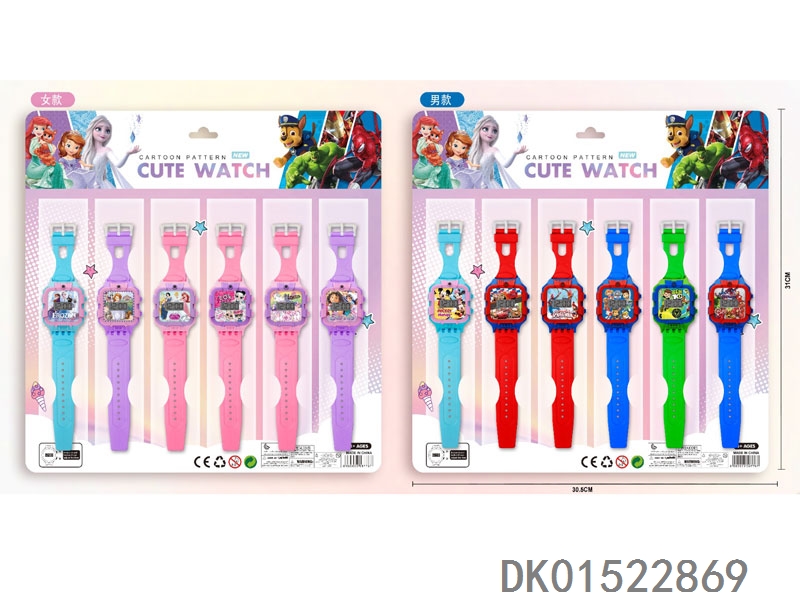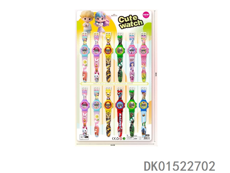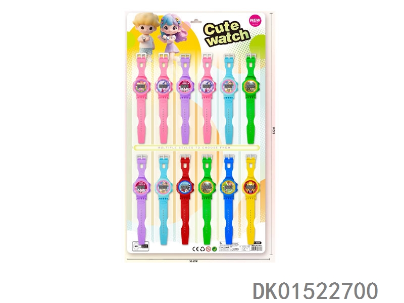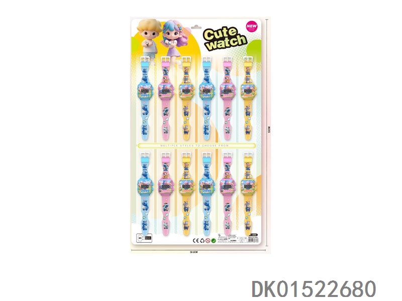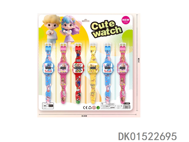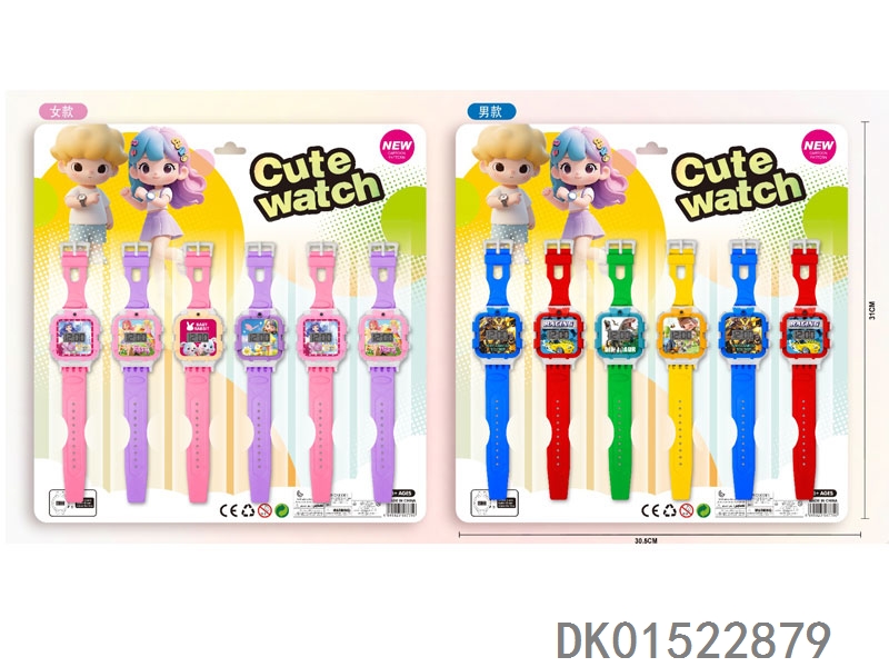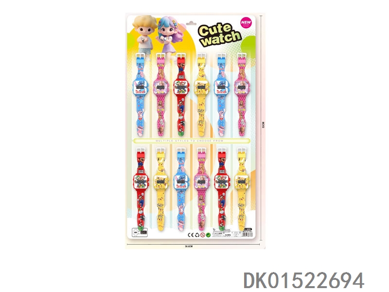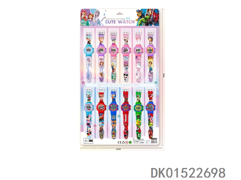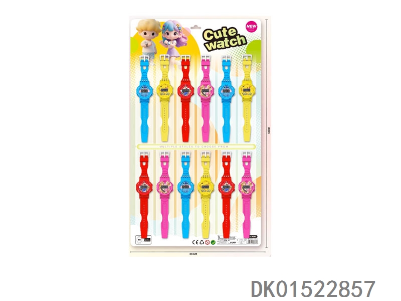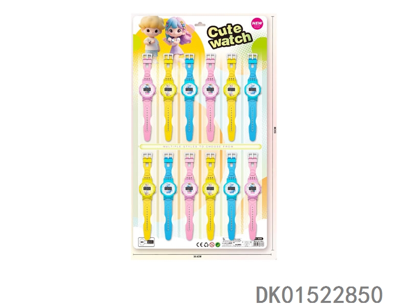 12 Electronic circular watches with 6 unprinted straps per plate